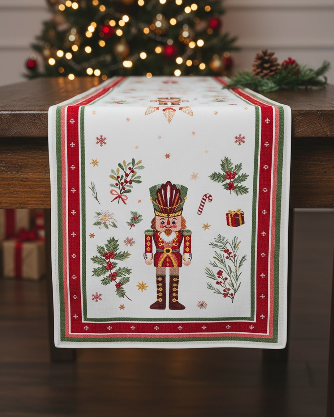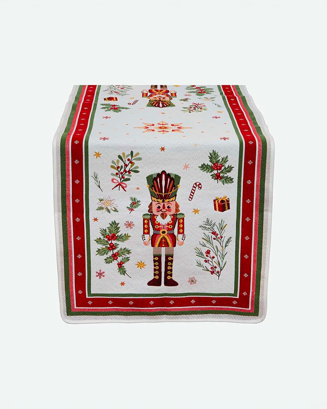 Un charmant chemin de table Jacquard orné du célèbre Casse-Noisette et de motifs traditionnels de Noël. Compact et élégant, il apporte instantanément une touche festive, raffinée et chaleureuse à votre décoration de fin d’année.