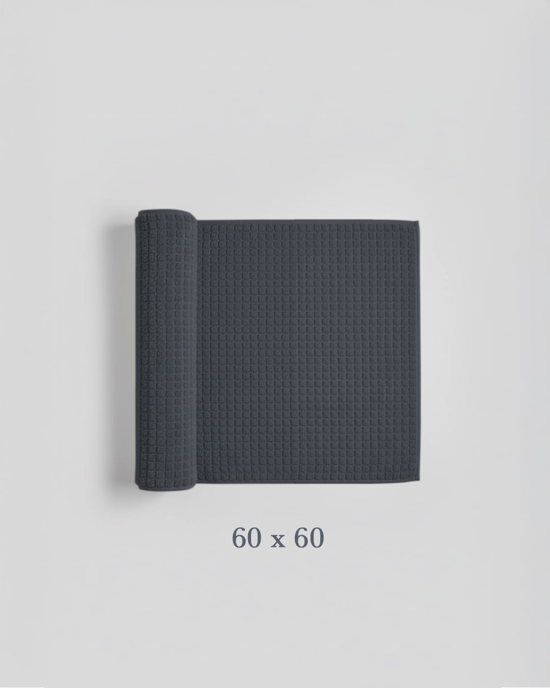 Tapis de douche en coton 900 g/m², dense et absorbant, au format 60 × 60 cm, dans un coloris anthracite contemporain.