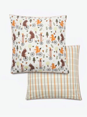 💤 Housse de couette réversible 140×200 cm : un côté “histoire du soir”, un côté plus sobre à carreaux.