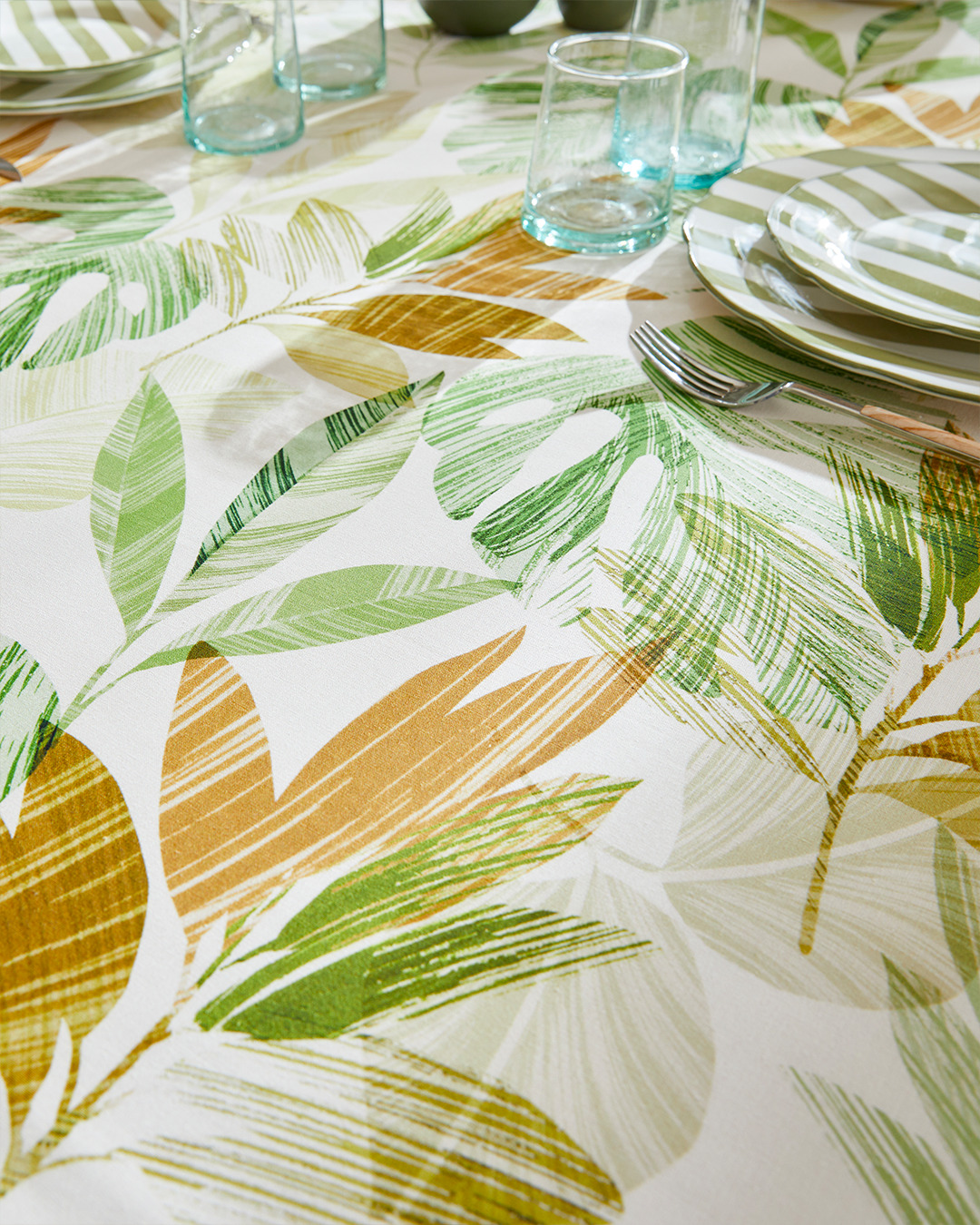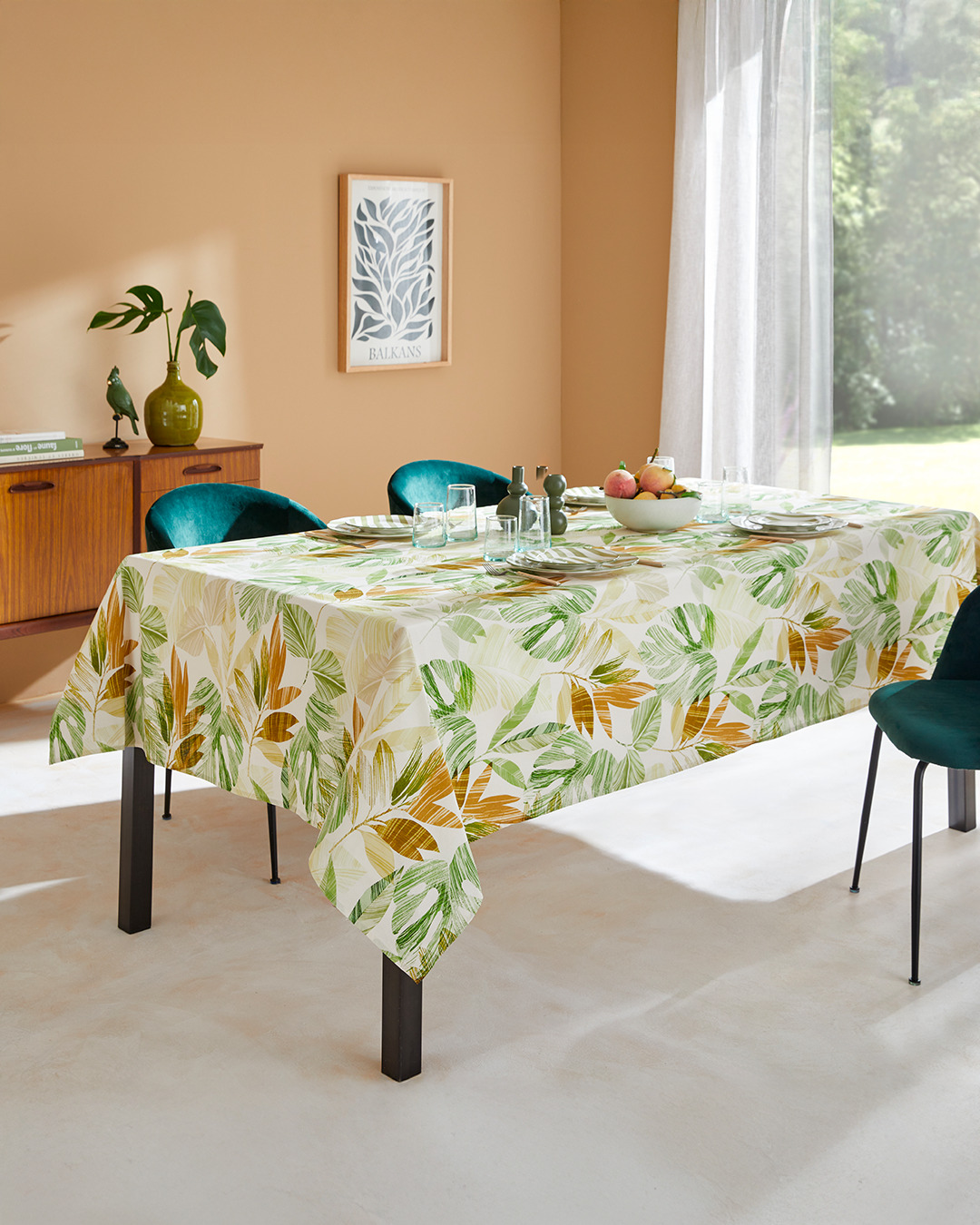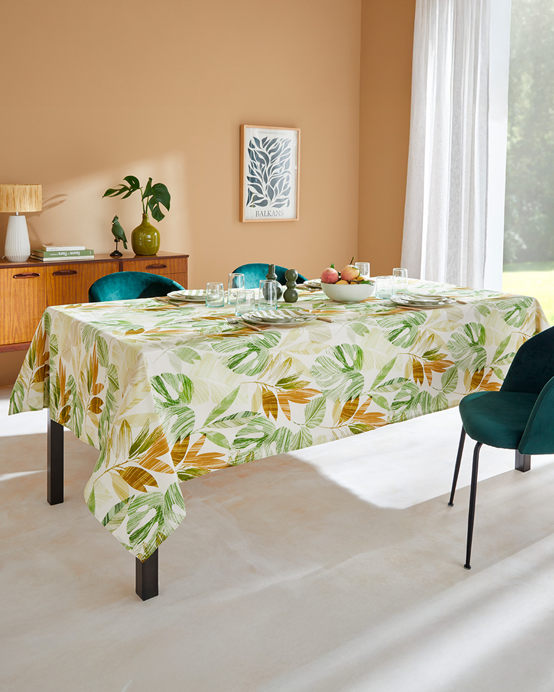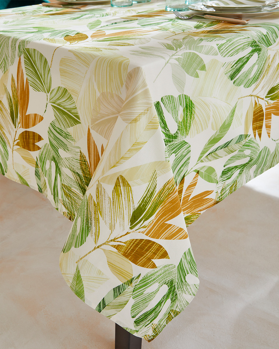Tissée dans une belle toile de coton labellisée France Terre Textile, la nappe Tropical valorise le savoir-faire textile français, avec une conception et un ennoblissement réalisés en Alsace.