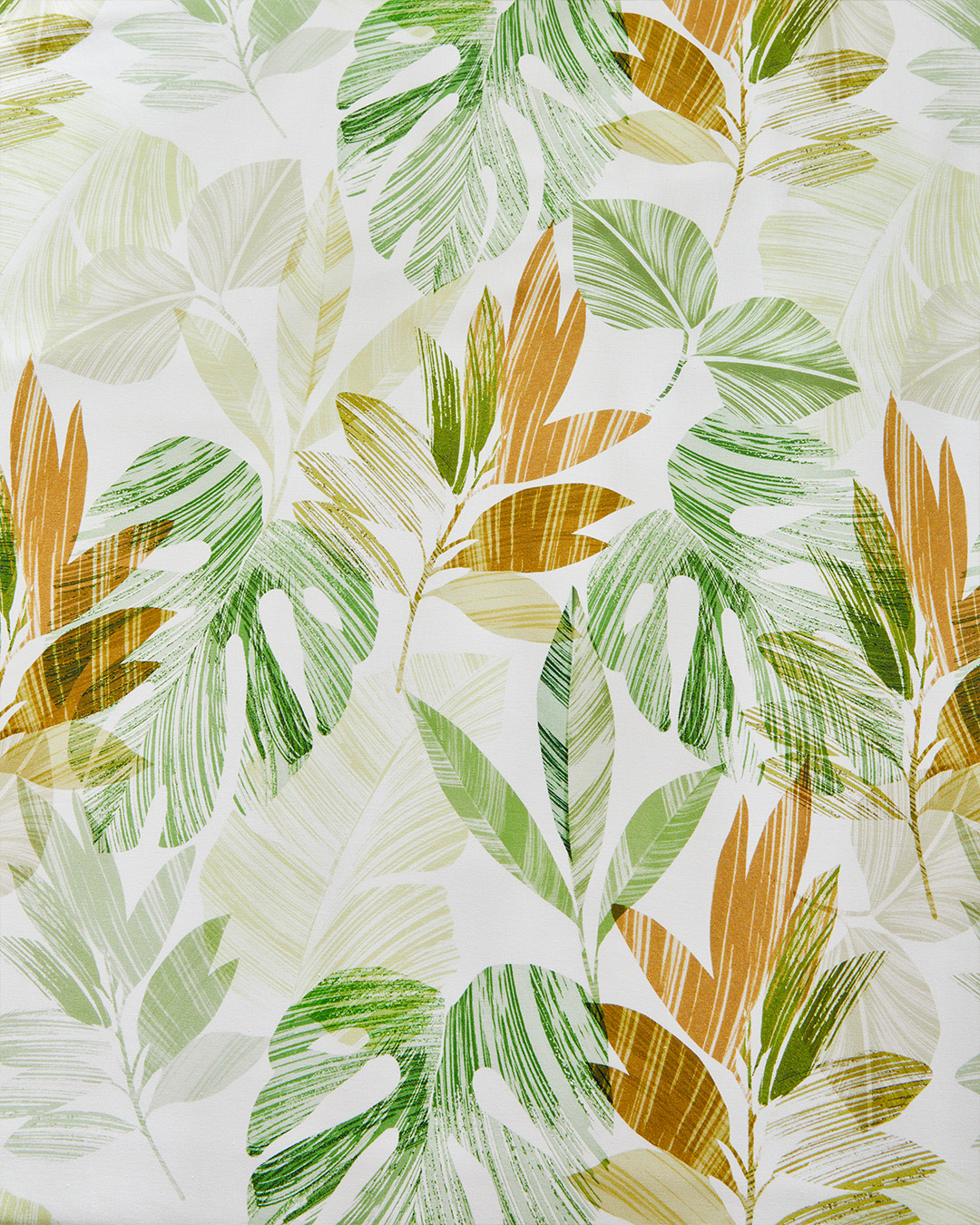 Ses grandes feuilles exotiques dans une palette de verts tendres et de bruns dorés créent une atmosphère apaisante et élégante, inspirée des jardins luxuriants.